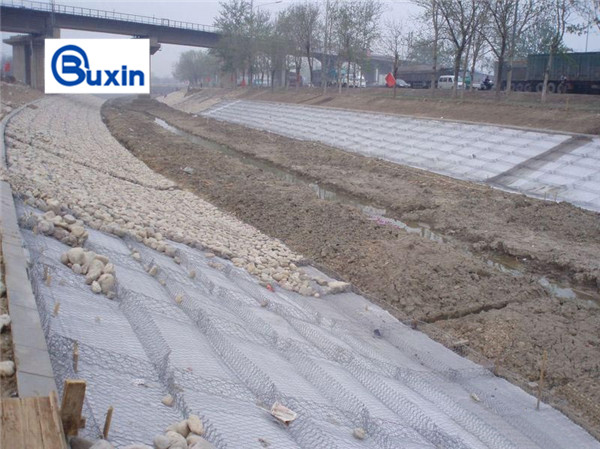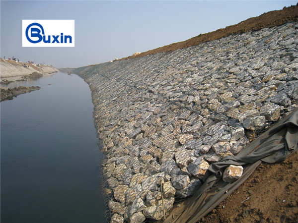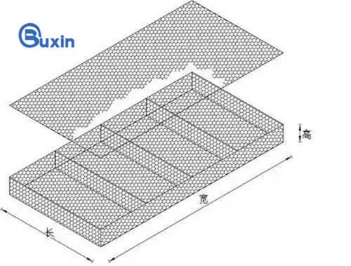 石籠護(hù)坡由高抗腐蝕、高強(qiáng)度、具有延展性的低碳鋼絲或者包覆PVC的以上鋼絲使用機(jī)械編織而成,使用該網(wǎng)制成的箱型結(jié)構(gòu)就是石籠網(wǎng)。