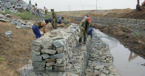 為了減輕湍急的水流沖刷河堤,在河堤的內側或者河槽的邊緣,鋪石籠網箱或者石籠網墊,洶涌的河水直接沖擊石籠網箱或者石籠網墊,這樣保護河堤或者河槽。河水在彎曲的河道處,由于遇到石籠網箱或者石籠網墊,河水就會拐彎,順著固有的河道流淌。