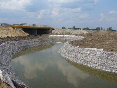 考慮到石頭的沉降,裝填時應有50mm的超高,并且護墊內裝填的石頭需用人工擺放,只管減少空隙,并確保外面平坦。絞合蓋子:在蓋上蓋子以前,需對裝填時形成曲折的隔板進行校正,對已裝填的石頭停止平坦。最終確保一切橫向、縱向邊緣在同一直線上、石頭外面平坦、不存在突出、現象。