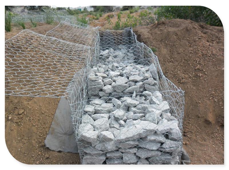 格賓籠是由金屬線材編織的角形網(wǎng)(六角網(wǎng))制成的網(wǎng)箱。石籠網(wǎng)由高抗腐蝕、高強(qiáng)度、具有延展性的低碳鋼絲或者包覆PVC的以上鋼絲使用機(jī)械編織而成,使用該網(wǎng)制作而成的箱型結(jié)構(gòu)就是石籠。