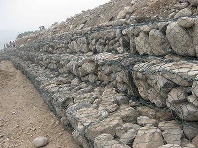 石籠網所運用的低碳鋼絲直徑依據工程規(guī)劃要求而不同。一般介于2.0-4.0mm之間,石籠網鋼絲的抗拉強度不少于38kg/m2,金屬鍍層重量一般高于245g/m2,石籠網片的邊際線直徑一般要大于網線直徑。其雙線絞合部分的長度不得小于50mm。